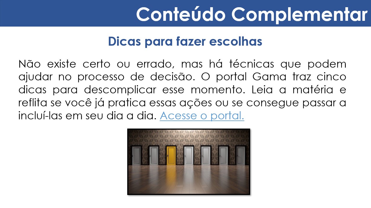 Dicas para fazer escolhas | |